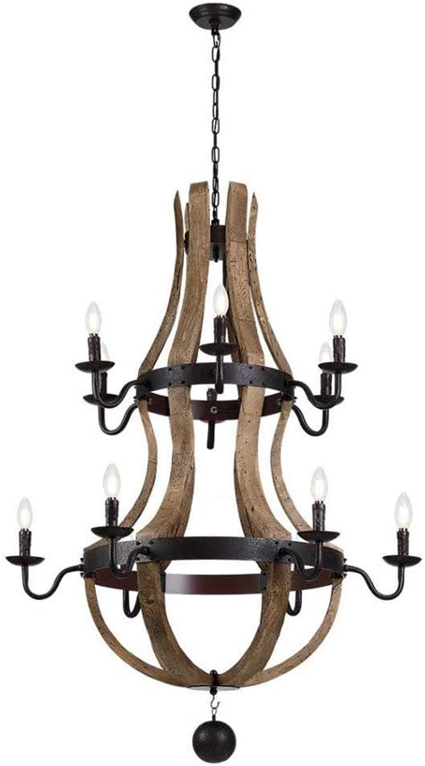 newegg 2 Tier Wine Barrel Staves and Hoops Chandelier Openwork Wood French Country Rustic Candle-Style 42 W x 56H